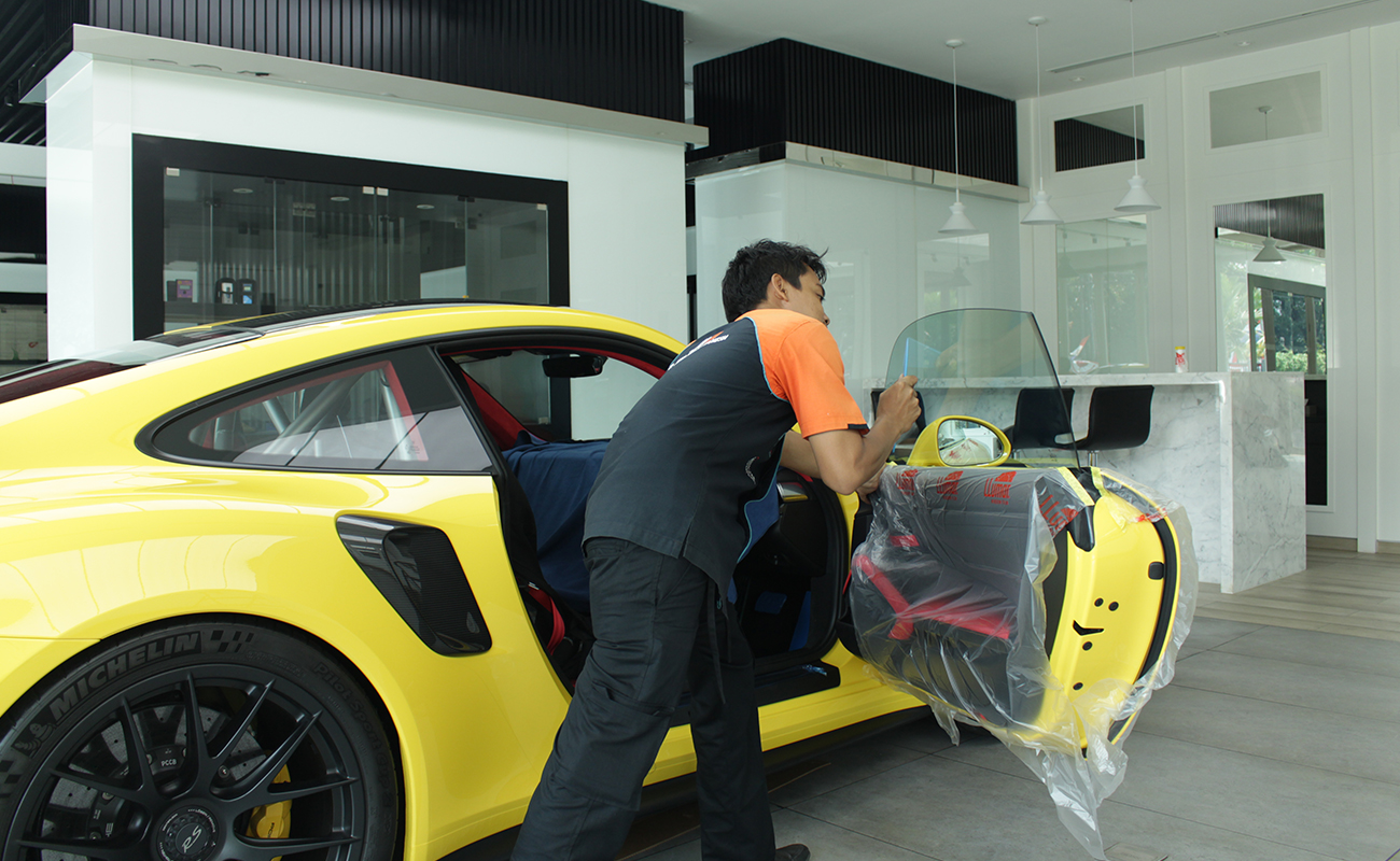 Paint protection film will greatly protect your car from physical damage (like scratches, stain) and is even able to be installed accurately to complex-shaped car parts. You can experience a new type of auto body protection with the stretching properties that fit properly to the auto body shapes and the strength and shock absorbing power of the film.